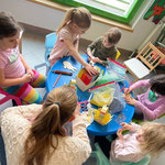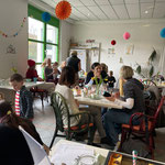 Währenddessen genießen die Kinder ihre Zeit beim Spielen, Schmökern in Bilderbüchern, Malen oder Basteln. Die Turnkinder wissen genau, wo sie ihre Eltern finden – mitten im bunten Treiben des Cafés.