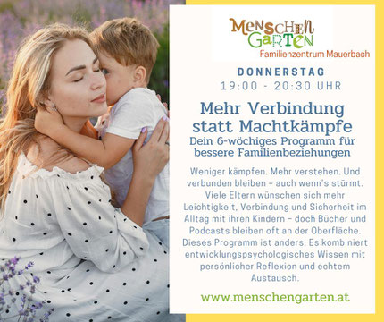 Ich bin zertifizierter Elterncoach vom Jai Institute for Parenting, psychosoziale Beraterin (in Ausbildung unter Supervision), Familylab Trainerin, verheiratet und selbst zweifache Mama.